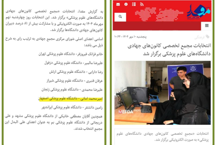 نتیجه نهایی انتخابات اعضای دانشجویی شورای مرکزی کانون جهادی دانشجویی دانشگاه علوم پزشکی اعلام شد.