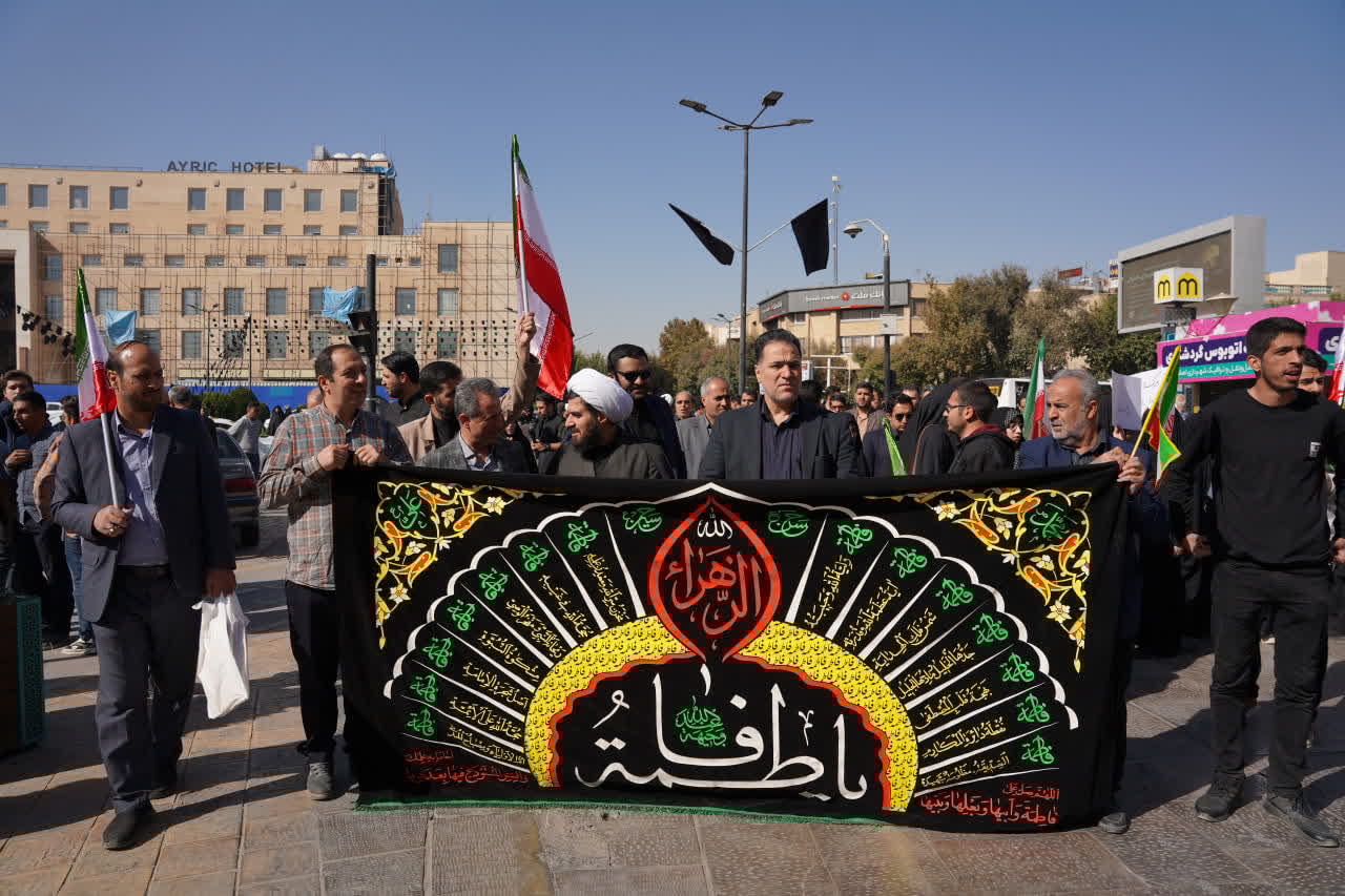 کارکنان حوزه سلامت با در دست داشتن پرچم شهادت حضرت فاطمه (ع) ، پلاکاردها و شعارهای انقلابی، همگام با سایر اقشار مردم، در این مراسم باشکوه شرکت کردند