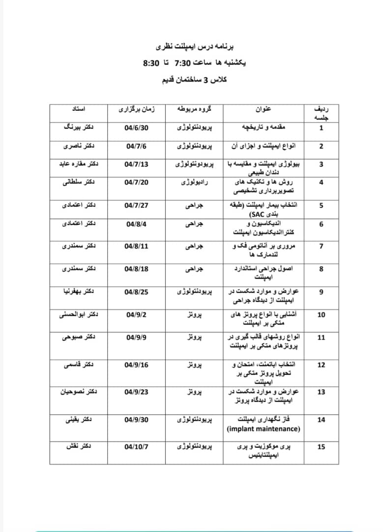 شناسنامه درس پروتز پیشرفته 1 نظری